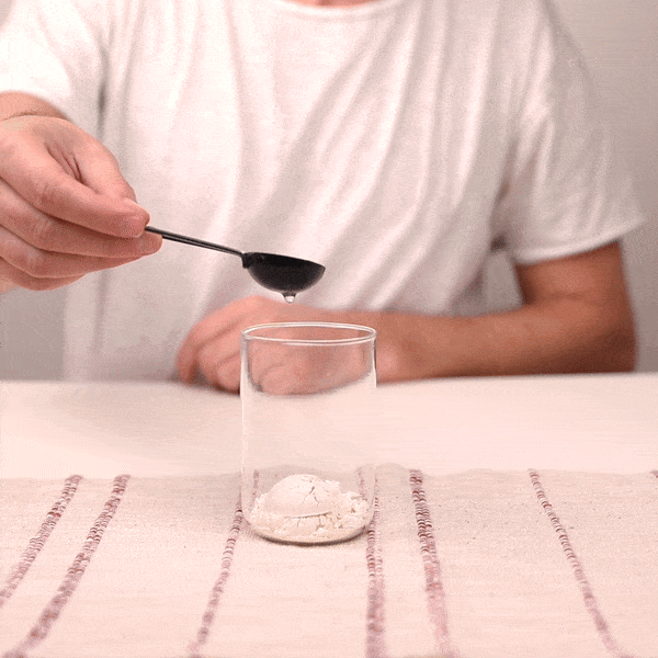 Add 50mls (approx 1/4 cup) of room temperature water to the dry ingredients.