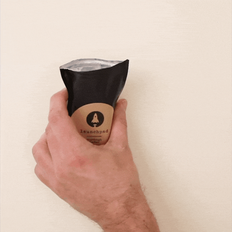 Give your fed starter another hour or two on top of the Launchpad, and then you're ready to bake! Once you've added the starter needed for your recipe, pop the cover back on your jar of remaining starter and put it in the fridge for next time.