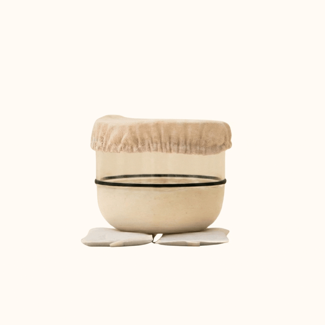To keep your Sourdough Starter Culture healthy and free of any external bacteria, keep it in the fridge covered with the supplied cloth cap.
